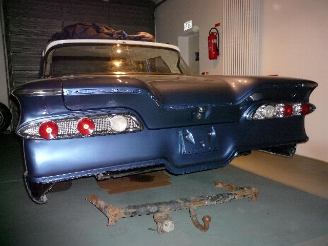 Mittlerweile steht der Edsel beim Lackierer und wird komplett bis aufs Blech abgeschliffen und blank gemacht.